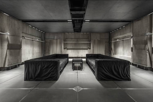Capitalizing on the Chinese market, this is the brand's largest global store, showcasing an exhibition of eight archival ensembles from its The Subtleties of a Dialogue presentation at Kering's headquarters last September in Paris. The store will provide the brand's newest ready-to-wear collections for men and women, in addition to handbags, footwear, jewelry, eyewear, and various accessories. The store maintains its futuristic and ethereal look, devoid of any merchandise. The concrete buildings prominently feature in the store, enhancing the unsettling ambiance, but the crushed leather sofas introduce a softer element to the environment. The minimalist room adheres to a "raw architecture" idea, featuring exposed ceiling grids, extruded aluminum shelving, retrofitted metal fittings, and textured concrete that complements the stone tiles. The house stated that “the construction process adheres to existing structural elements, rendering it inherently sustainable by utilizing fewer virgin materials.”
