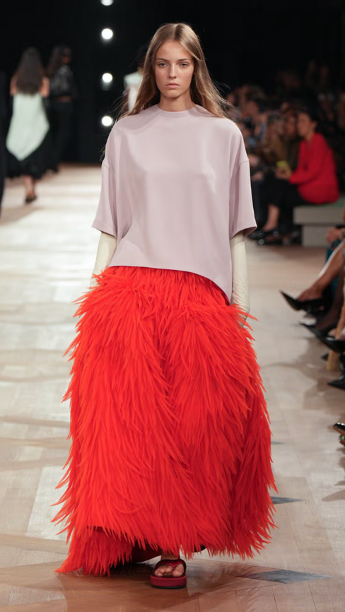 Even with this transformative method, the essence of Piccioli’s mindset emerged. That is the essence of initiating a new age, after all. Feathered skirts, opera gloves, and a monochromatic color palette evoked the distinctive youthful elegance characteristic of his Valentino designs. His partner is adorned in oversized flip-flops and parachute khaki shorts; what of it? This skill became especially effective when he noticed that the couture audience was rapidly becoming younger and desired immediate gratification.
