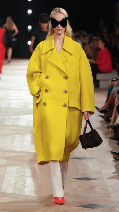 Any reference made by Piccioli required, in the designer's own terminology in the show notes, a complete "recalibration." Consequently, the apparel served as a palate cleanser that connected the past with the present, a challenge that every emerging designer must confront (albeit it is uncommon to encounter so many consecutively). The inaugural ensemble, inspired by the 1957 sack dress—a controversial silhouette of its era—paired with oversized sunglasses reminiscent of contemporary collections, exemplifies this concept effectively. Identical to the 1960s evening cape depicted in leather, paired with low-rise skinny slacks and a gold B-buckle belt. However, if you were unaware of that context, you might perceive it as the attire of the most sophisticated woman you know, and that widespread allure is what renders the clothes entirely relevant to contemporary times.
