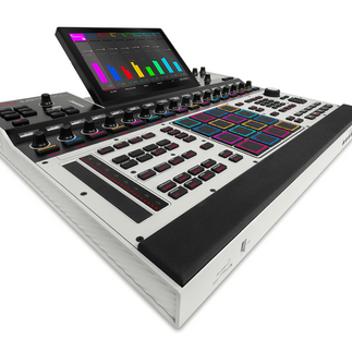 The device is equipped with a 10.1-inch HD multi-gesture touchscreen located in the front and centre, which has adjustable tilt controls. The display is luminous, distinct, and vibrant, providing real-time visual input in conjunction with dedicated function buttons for swift, seamless processes. Located beneath this are 16 touch-sensitive Q-Link knobs, each featuring a distinct OLED display, alongside a dedicated step sequencer equipped with RGB buttons, an assignable performance touch strip, and an innovative XL Channel Command system for expedited access to mixing and recording parameters.